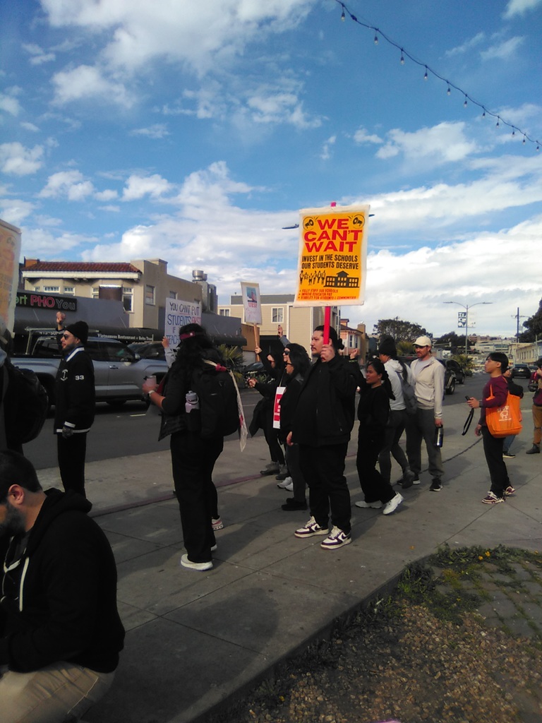 Otto (dark shirt/pant holding sign) support United Educators of San Francisco 2/10/26. |